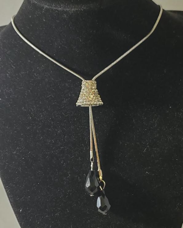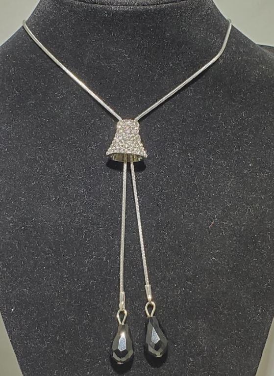 N2083 Silver Rhinestone Bell Shape Black Gem Adjustable Sweater Necklace with FREE Earrings